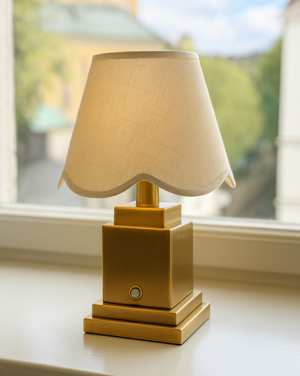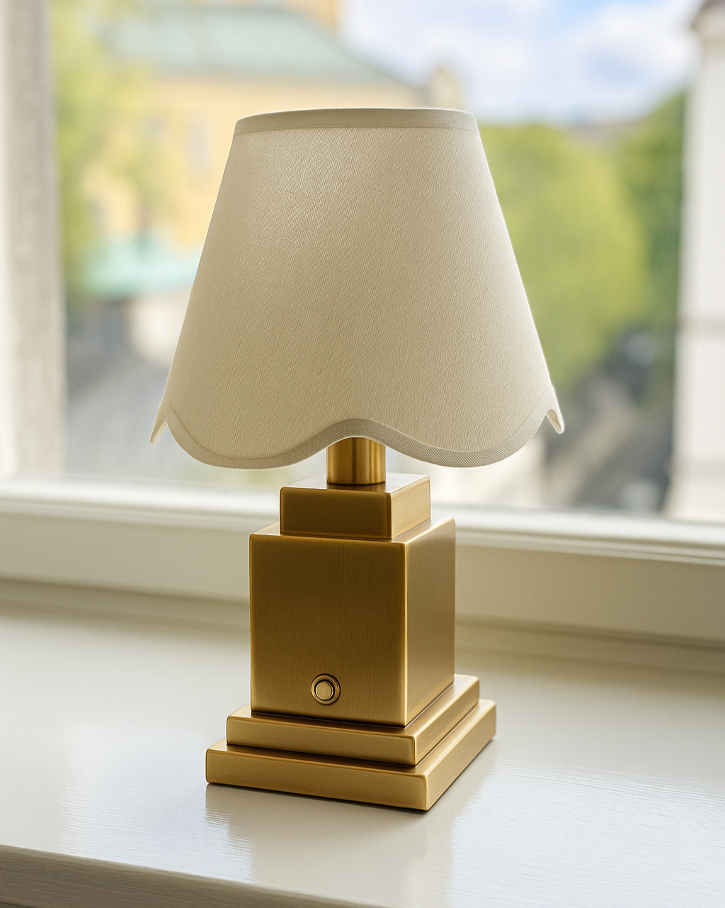 Verleihen Sie Ihrem Zuhause Eleganz und Wärme mit unserer wiederaufladbaren Tischlampe – gefertigt aus Metall mit einem kunstvoll gestalteten Lampenschirm. Ideal, um eine gemütliche und einladende Atmosphäre zu schaffen. Kabellos und vielseitig – perfekt für skandinavisch inspirierte Wohnräume, Terrassen oder gedeckte Tafeln. Mobiler Luxus, der sich nahtlos in jedes Ambiente einfügt – drinnen wie draußen.