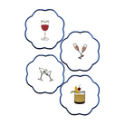 Bringen Sie einen Hauch von Eleganz in Ihre festlichen Anlässe mit diesem exquisiten Set aus vier Untersetzern, gefertigt aus 100 % Leinen und verziert mit festlichen Getränkemotiven und einer zarten, gewellten Kante. Die Beschichtung schützt vor Flecken, und die Untersetzer sind maschinenwaschbar für eine mühelose Pflege.
