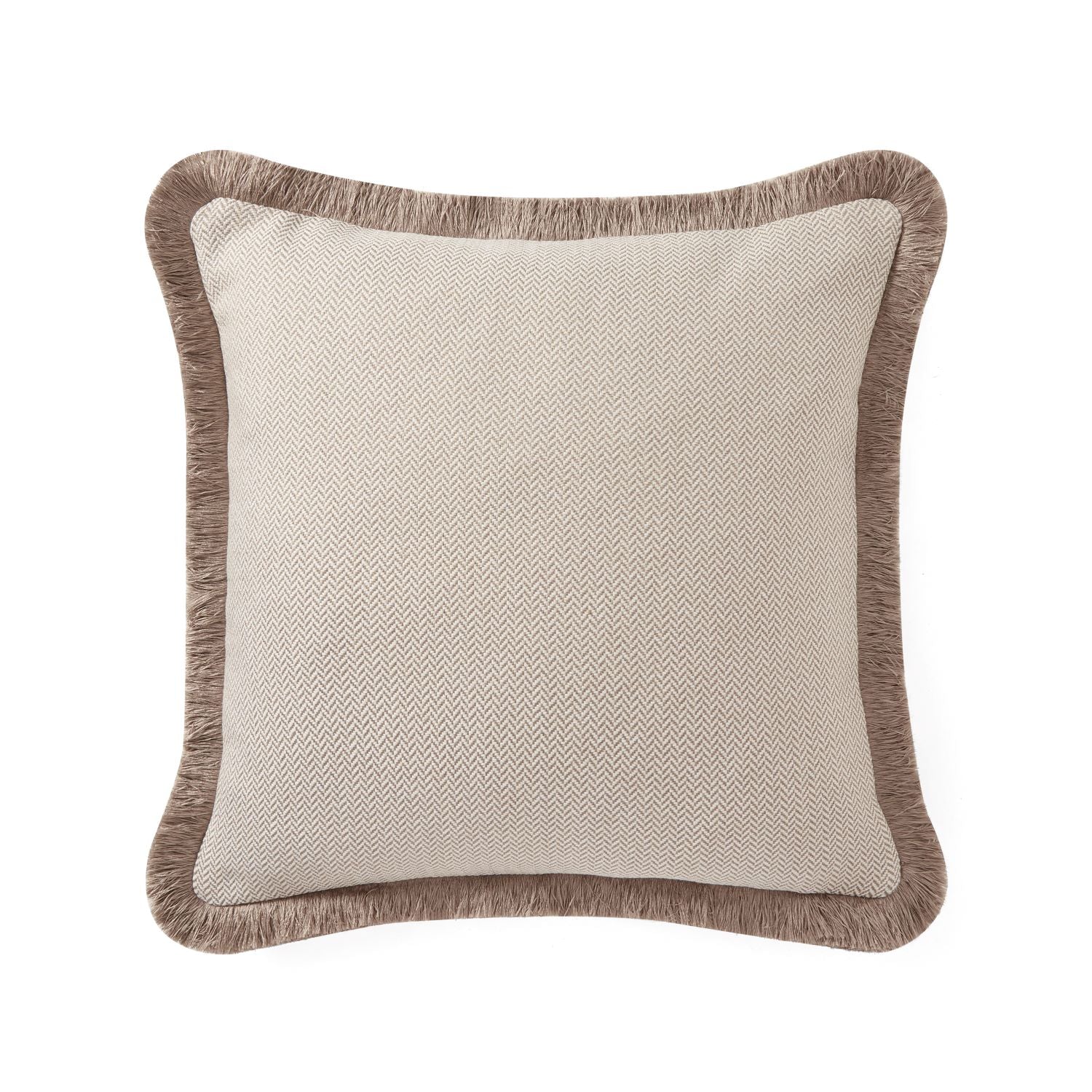 Light Beige & Toffee Mix: Discover the elegance of our Light Beige & Toffee Mix Herringbone Chic Pillow Cover. The small herringbone pattern subtly fuses light beige with hints of toffee, creating a serene and balanced aesthetic. Its fringe, in a contrasting hue, adds a layer of sophistication.