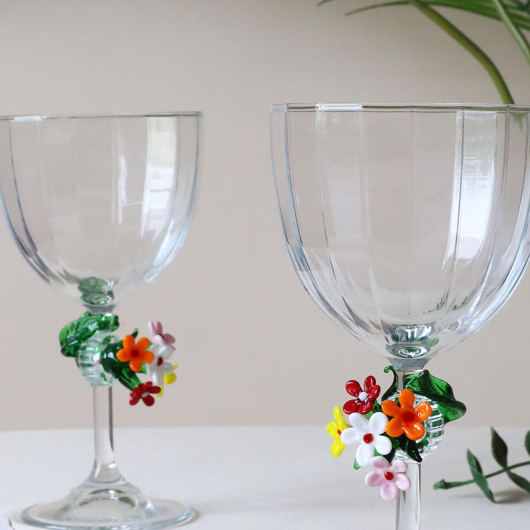 Introducing the Daisy Wine Glass, from our exclusive Summer Garden Collection. These handblown vintage wine glasses feature delicate daisy flowers, each with unique and intricate details. Limited edition and one-of-a-kind, embrace summer with these stunning pieces.