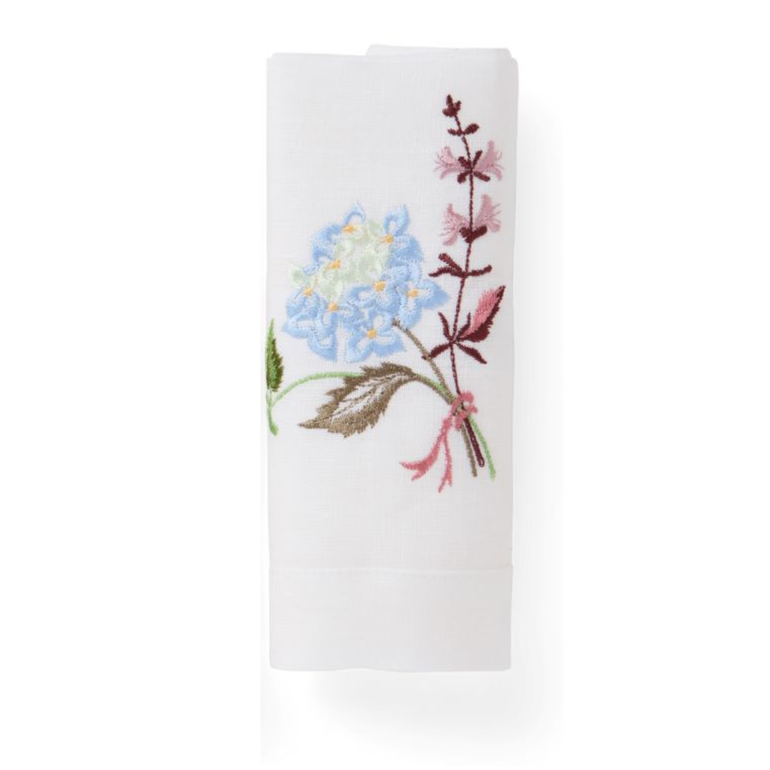 Say hello to our summer collection with the most dreamy embroidered summer flowers. Introducing the stunning Hortensia consciously handmade and embroidered napkin in white premium Italian linen, featuring elegant stitching on the border. With generous sizing, it's perfect for adding an elegant touch to your summer table. The Hortensia flower symbolizes heartfelt emotions, gratitude, and understanding.