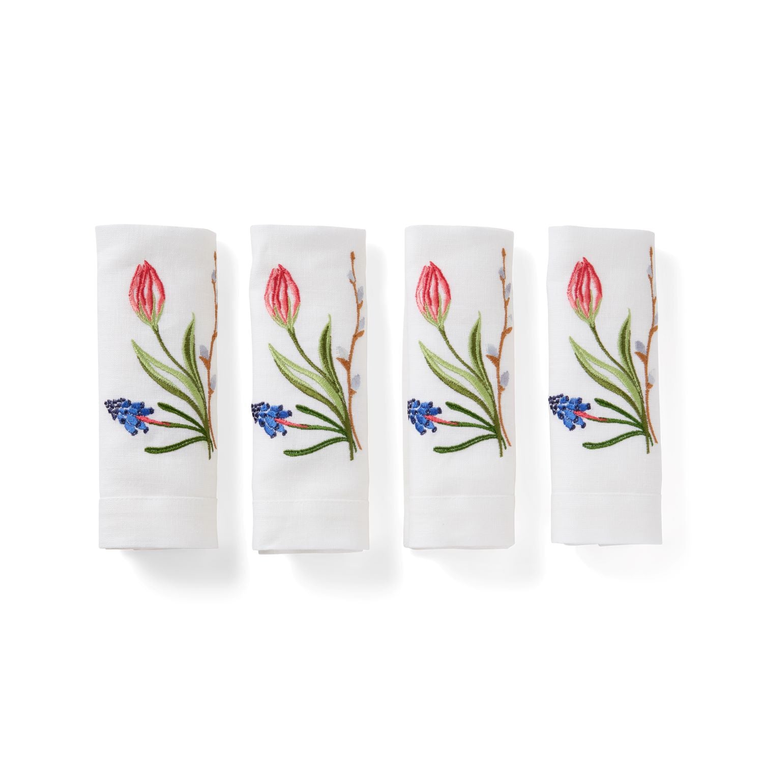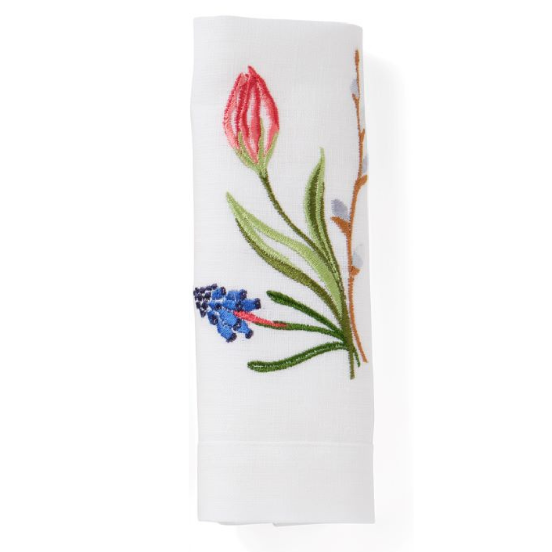 Say hello to our summer collection with the most dreamy embroidered summer flowers. Introducing the stunning Tulip consciously handmade and embroidered napkin in white premium Italian linen, featuring elegant stitching on the border. With generous sizing, it's perfect for adding an elegant touch to your summer table. The Tulip flower symbolizes love and passion.