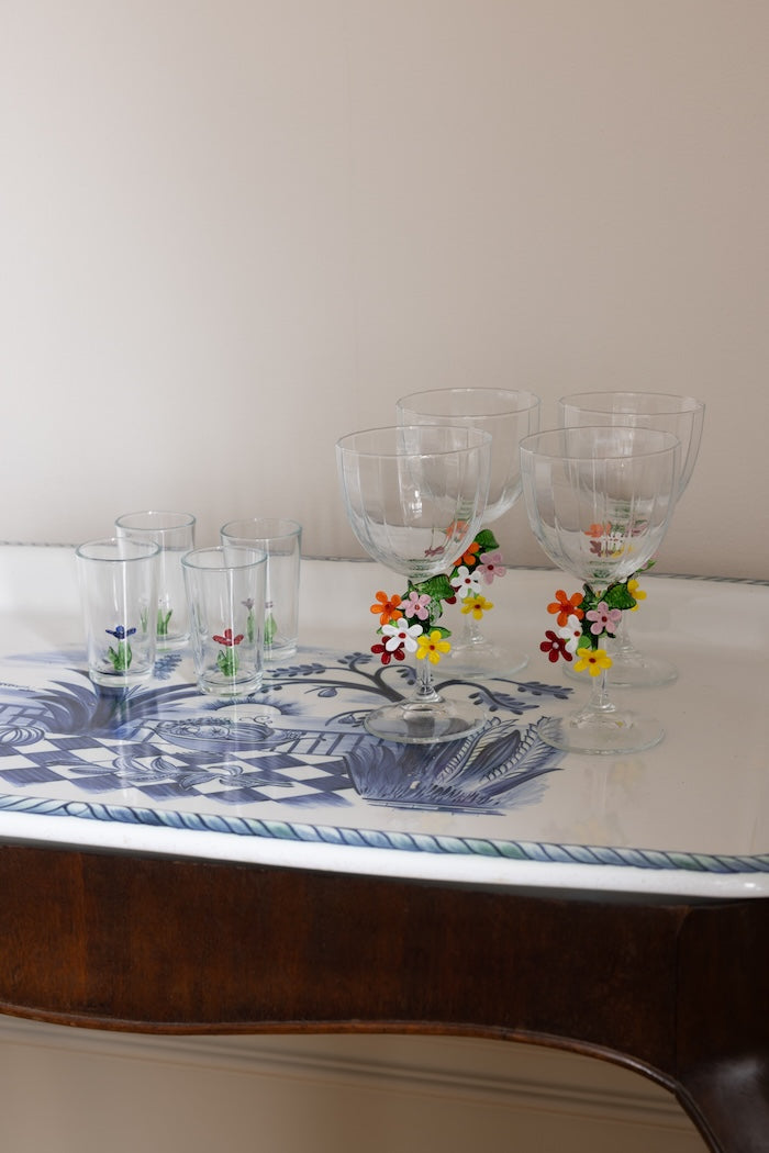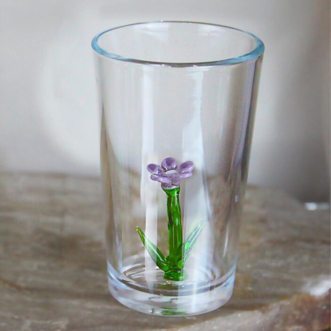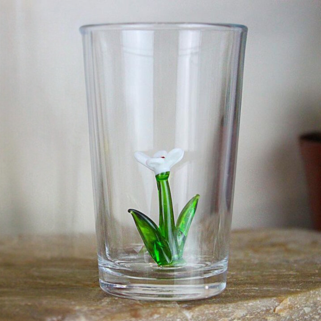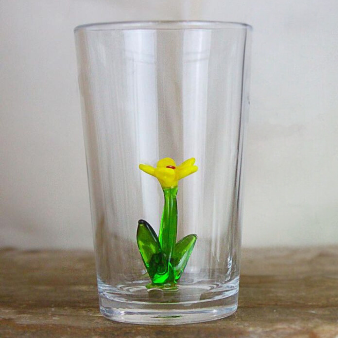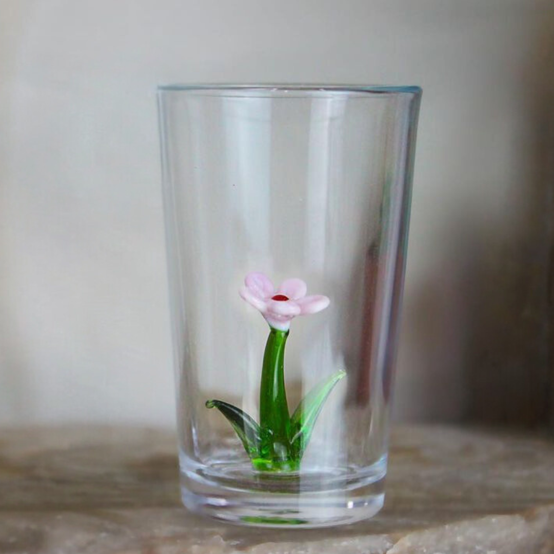 Introducing Daisy Glass, from our exclusive Summer Garden Collection. These handblown vintage glasses feature delicate daisy flowers, each with unique and intricate details. Limited edition and one-of-a-kind, embrace summer with these stunning pieces.