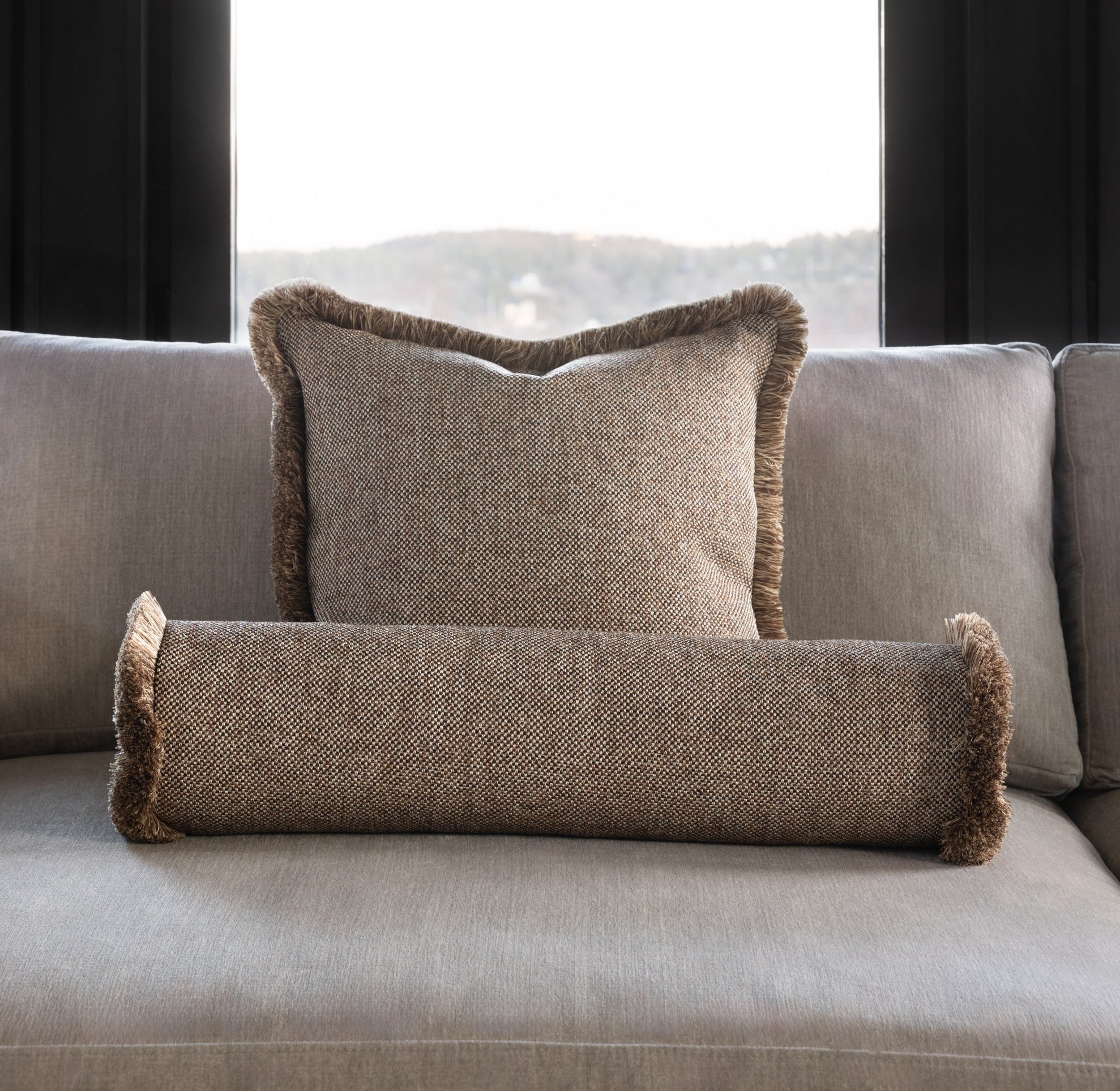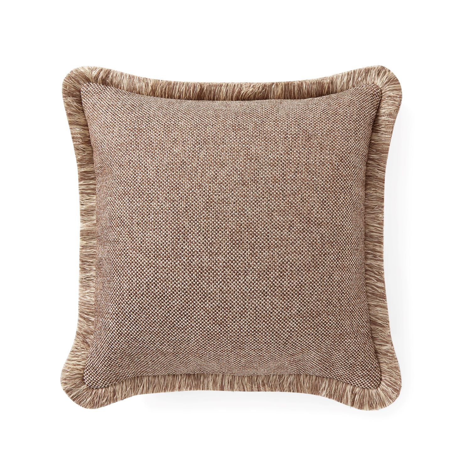 Embrace the rustic elegance of this stunning piece for your home. A tribute to the warm, earthy hues of the Tuscan landscape, featuring a beautifully quilted fabric that weaves together rich shades of beige and brown. The luxurious texture is further enhanced by a meticulously blended brown fringe, adding depth and a sense of refined comfort to the design. Each pillow cover is expertly handcrafted reflecting a commitment to unparalleled quality and durability. This pillow cover is not just an accessory, but a centerpiece, capturing the essence of Tuscan charm and sophistication, ideal for bringing a touch of elegance into any living space.